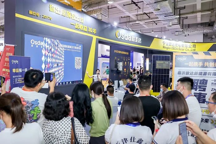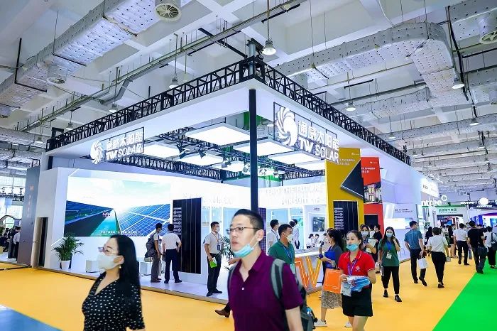本屆“太陽(yáng)能展”是以“金色陽(yáng)光 清潔能源 雙碳引領(lǐng) 綠色發(fā)展”為主題,展示面積45000平方米,現(xiàn)場(chǎng)分為光伏、太陽(yáng)能+多能互補(bǔ)、智慧儲(chǔ)能、產(chǎn)學(xué)研和金融等展區(qū)。吸引了國(guó)網(wǎng)、華為、創(chuàng)維、TCL、比亞迪、隆基、中建材、通威、力諾、晶科、晶澳、阿特斯、中來(lái)民生、天合、正泰、錦浪、青山控股、固德威、陽(yáng)光電源、東方日升、禾望、科華、上能、中來(lái)、大海、海泰等全球500多家能源領(lǐng)軍企業(yè)參展,其中,世界500強(qiáng)企業(yè)7家,世界500強(qiáng)能源企業(yè)22家,全球前50強(qiáng)光伏企業(yè)有40多家參展、參會(huì),前20強(qiáng)光伏組件企業(yè)全部參展,前15強(qiáng)逆變器企業(yè)也盛裝亮相。