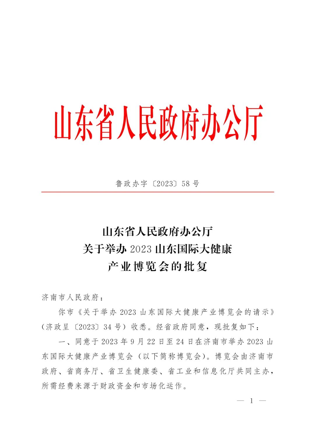 5月29日,山東省人民政府辦公廳正式發(fā)布批復(fù),同意于2023年9月22日至24日在濟(jì)南市舉辦2023山東國(guó)際大健康產(chǎn)業(yè)博覽會(huì)。