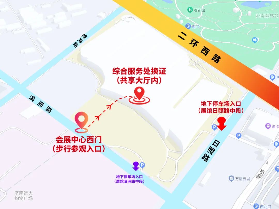 (會(huì)展中心西門為步行出入口,所有自駕車輛請(qǐng)從日照路或濱洲路地下停車場(chǎng)入場(chǎng))
