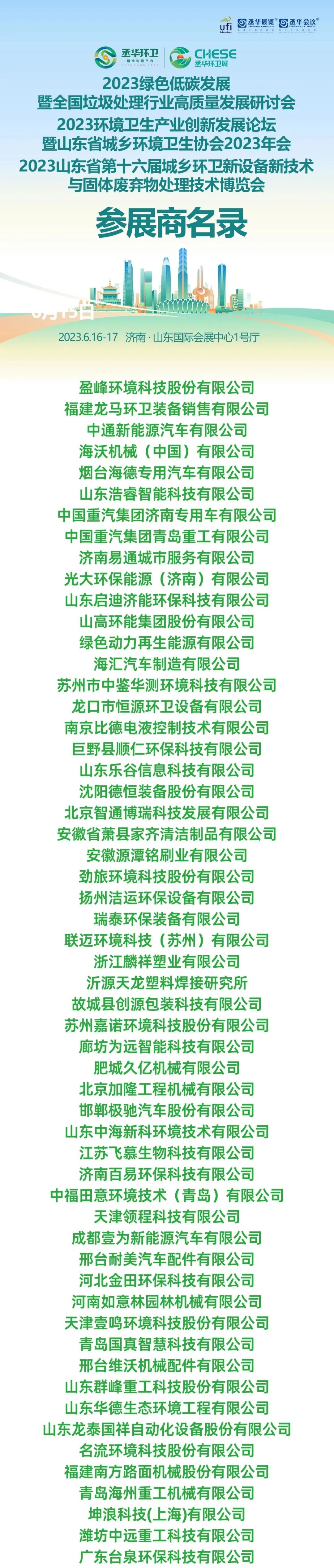 6月16日-17日,2023綠色低碳發(fā)展暨全國垃圾處理行業(yè)高質(zhì)量發(fā)展研討會、2023環(huán)境衛(wèi)生產(chǎn)業(yè)創(chuàng)新發(fā)展論壇、山東省城鄉(xiāng)環(huán)境衛(wèi)生協(xié)會2023年會、第十六屆城鄉(xiāng)環(huán)衛(wèi)新設(shè)備新技術(shù)與固體廢棄物處理技術(shù)博覽會,將在山東國際會展中心舉辦。