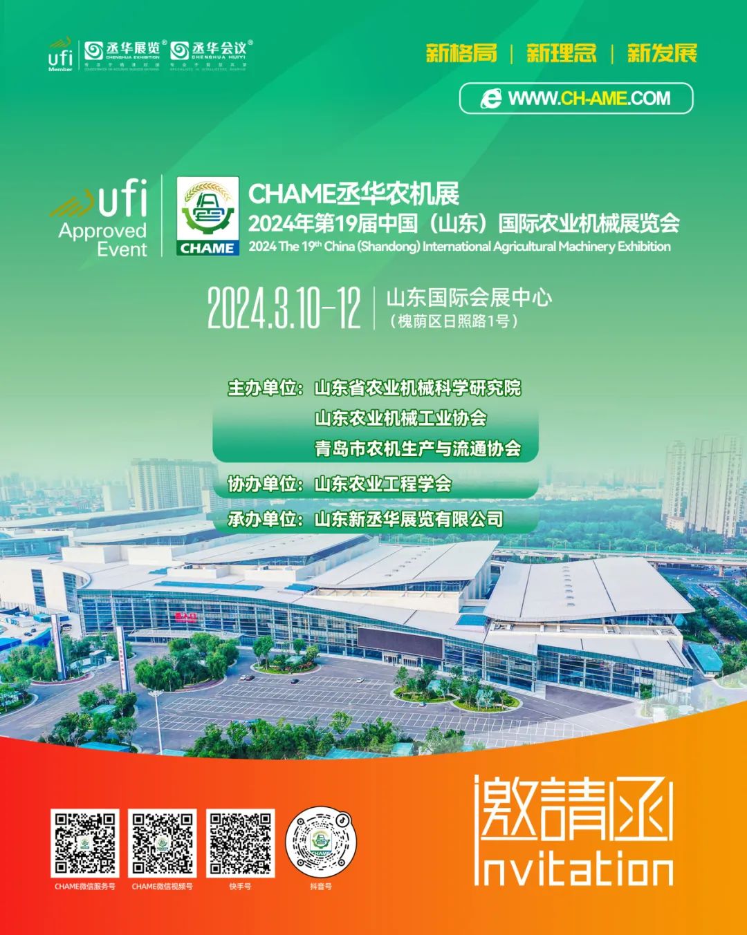 2024年第19屆中國(山東)國際農業(yè)機械展覽會(簡稱:山東農機展)將于2024年3月10-12日在山東國際會展中心(濟南槐蔭區(qū))舉辦。