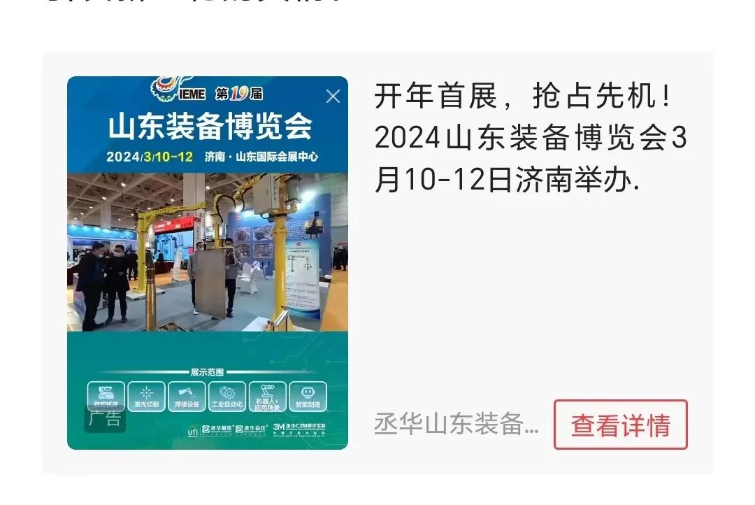 2024年3月10-12日,第19屆中國(山東)國際裝備制造業(yè)博覽會(huì)將再次盛裝啟幕,誠邀您親臨山東國際會(huì)展中心,共同體驗(yàn)這場(chǎng)工業(yè)制造的盛宴!