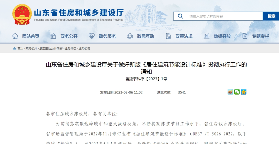 2023年5月,正式實(shí)施山東省新版《居住建筑節(jié)能設(shè)計(jì)標(biāo)準(zhǔn)》。該標(biāo)準(zhǔn)進(jìn)一步強(qiáng)化節(jié)能措施,能效水平提升30%,在全國(guó)各省份中率先達(dá)到節(jié)能率83%設(shè)計(jì)要求。
