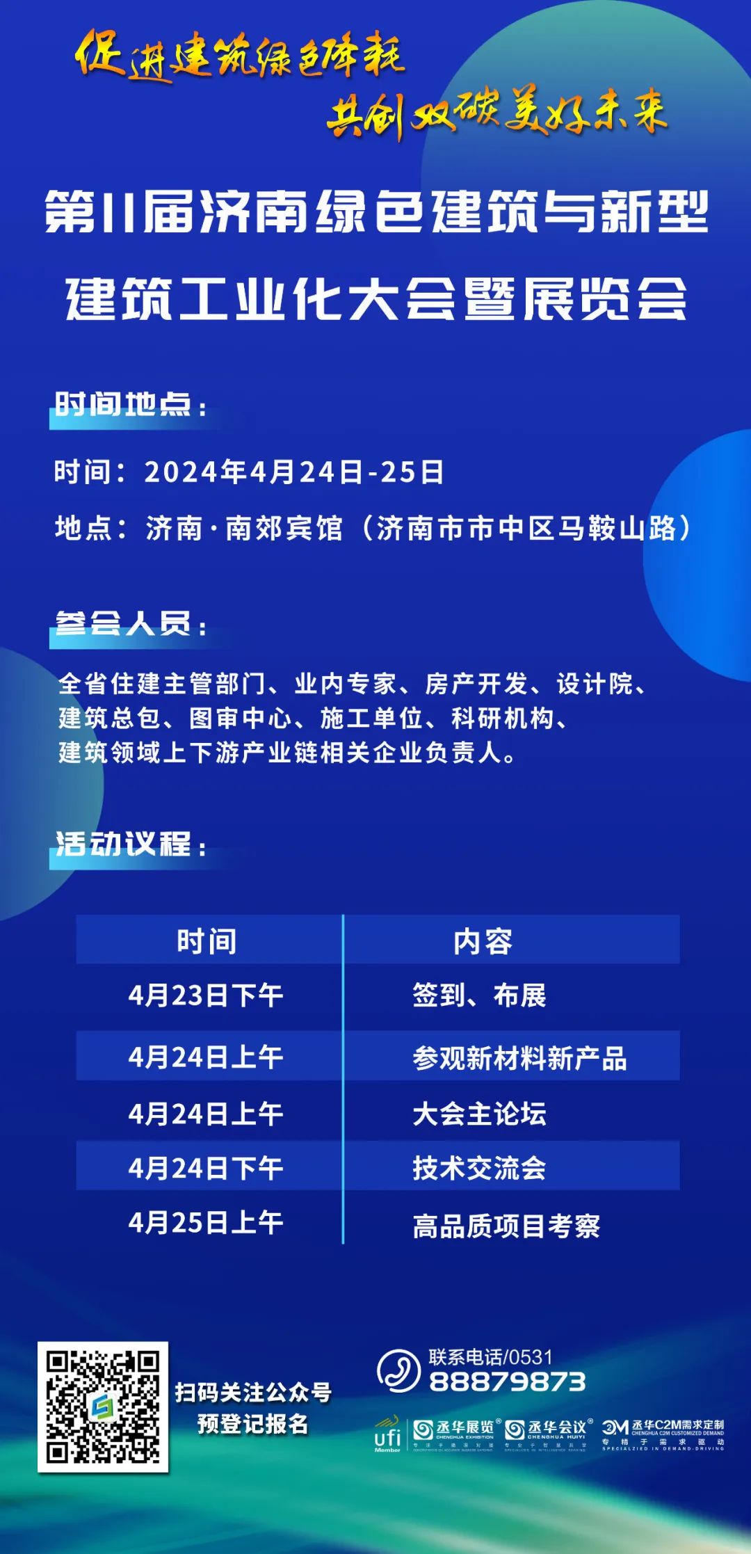 為積極推進(jìn)綠色低碳建筑的發(fā)展,助力建筑領(lǐng)域雙碳達(dá)標(biāo),在濟(jì)南市住房和城鄉(xiāng)建設(shè)局的指導(dǎo)下,“第11屆濟(jì)南綠色建筑與新型建筑工業(yè)化大會(huì)暨展覽會(huì)”定于2024年4月24-25日在濟(jì)南·南郊賓館隆重召開(kāi),同期召開(kāi)2024第二屆濟(jì)南超低能耗建筑技術(shù)交流會(huì)、83節(jié)能標(biāo)準(zhǔn)優(yōu)質(zhì)產(chǎn)品展覽會(huì)。