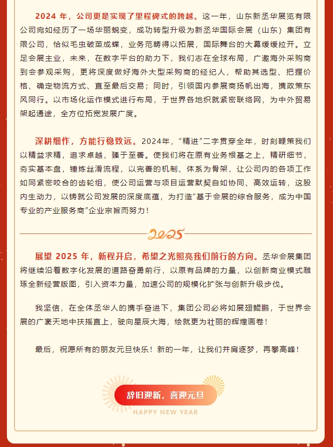 丞華會(huì)展集團(tuán)董事長(zhǎng)王愛(ài)民新年致辭:逐光新程,逐夢(mèng)前行