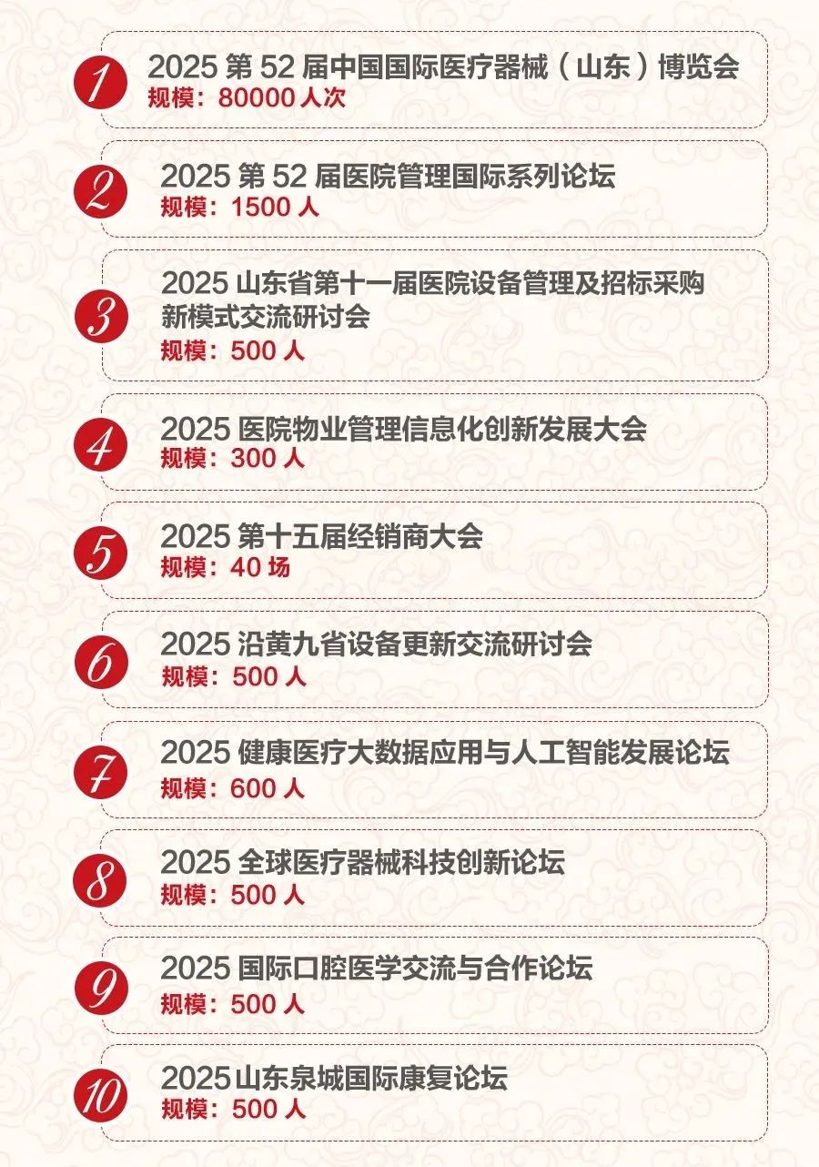 2024年第52屆中國(guó)國(guó)際醫(yī)療器械(山東)博覽會(huì)將于2025年3月15-17日在山東國(guó)際會(huì)展中心隆重舉行。