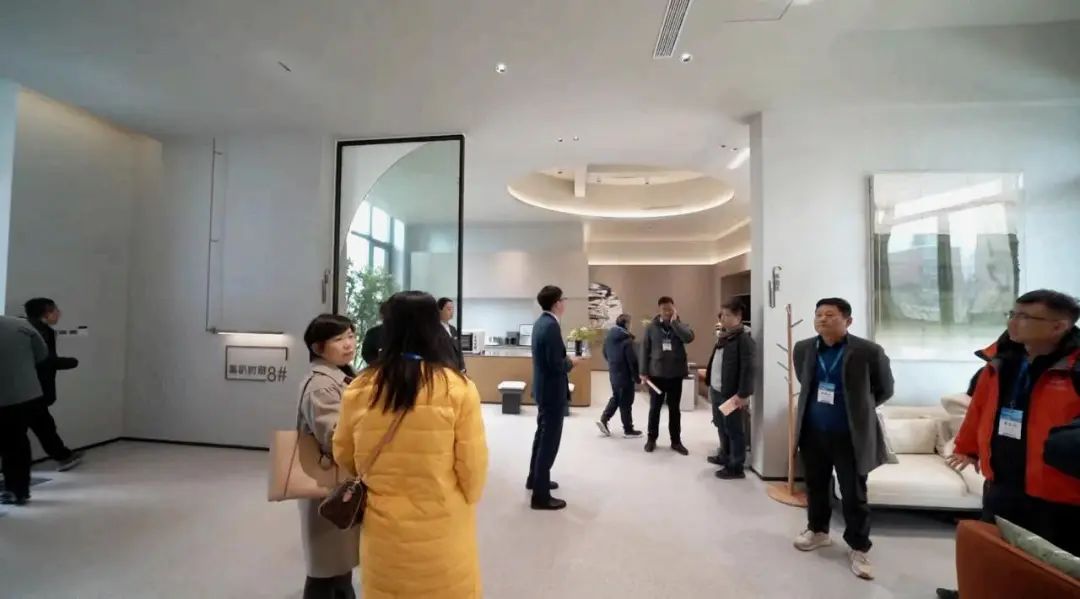 上午,觀摩團(tuán)率先抵達(dá)位于嶗山區(qū)CBD核心區(qū)域的銀豐玖璽城?珺府。該項(xiàng)目憑借卓越品質(zhì),成為青島市標(biāo)桿人居高端大盤。小區(qū)內(nèi)配套設(shè)施極為豐富,3800平方米全運(yùn)動(dòng)會(huì)所和6大主題架空層空間,組合出約8000平米集社交、運(yùn)動(dòng)、藝術(shù)、休閑、娛樂等于一體的社群社交場(chǎng)。住宅首層架空層匠心規(guī)劃,室內(nèi)兒童活動(dòng)、4點(diǎn)半學(xué)堂等多元空間有序分布,充分滿足業(yè)主日常生活與休閑需求。景觀布局以中心景觀軸線為核心,打造出層次豐富、愜意舒適的景觀環(huán)境。住宅外圍護(hù)結(jié)構(gòu)及建筑外窗熱工性能相較于普通建筑提高10%,節(jié)水器具用水效率等級(jí)達(dá)2級(jí),采用戶式全熱回收新風(fēng)除霾系統(tǒng),綠色低碳環(huán)保,全方位守護(hù)業(yè)主健康生活。園區(qū)運(yùn)用智慧化體系,人行及車行出入口采用無接觸式道閘門禁系統(tǒng),極大提升通行便捷性與安全性。