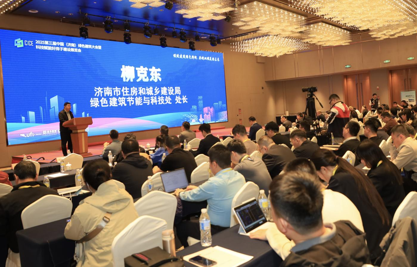 大會在熱烈的掌聲中拉開帷幕,濟南市住房和城鄉(xiāng)建設局建筑節(jié)能與科技處處長柳克東、山東省建設科技與教育協(xié)會會長王崇杰、濟南市房地產業(yè)協(xié)會會長劉岷、新丞華國際會展集團董事長助理祿鳳文等嘉賓先后上臺致辭。他們從政策引領、行業(yè)發(fā)展和技術創(chuàng)新等不同維度,深刻闡述了綠色建筑在“雙碳”戰(zhàn)略中的關鍵作用,并對未來建筑行業(yè)的綠色發(fā)展方向提出了前瞻性的展望,為大會定下了務實而奮進的基調。