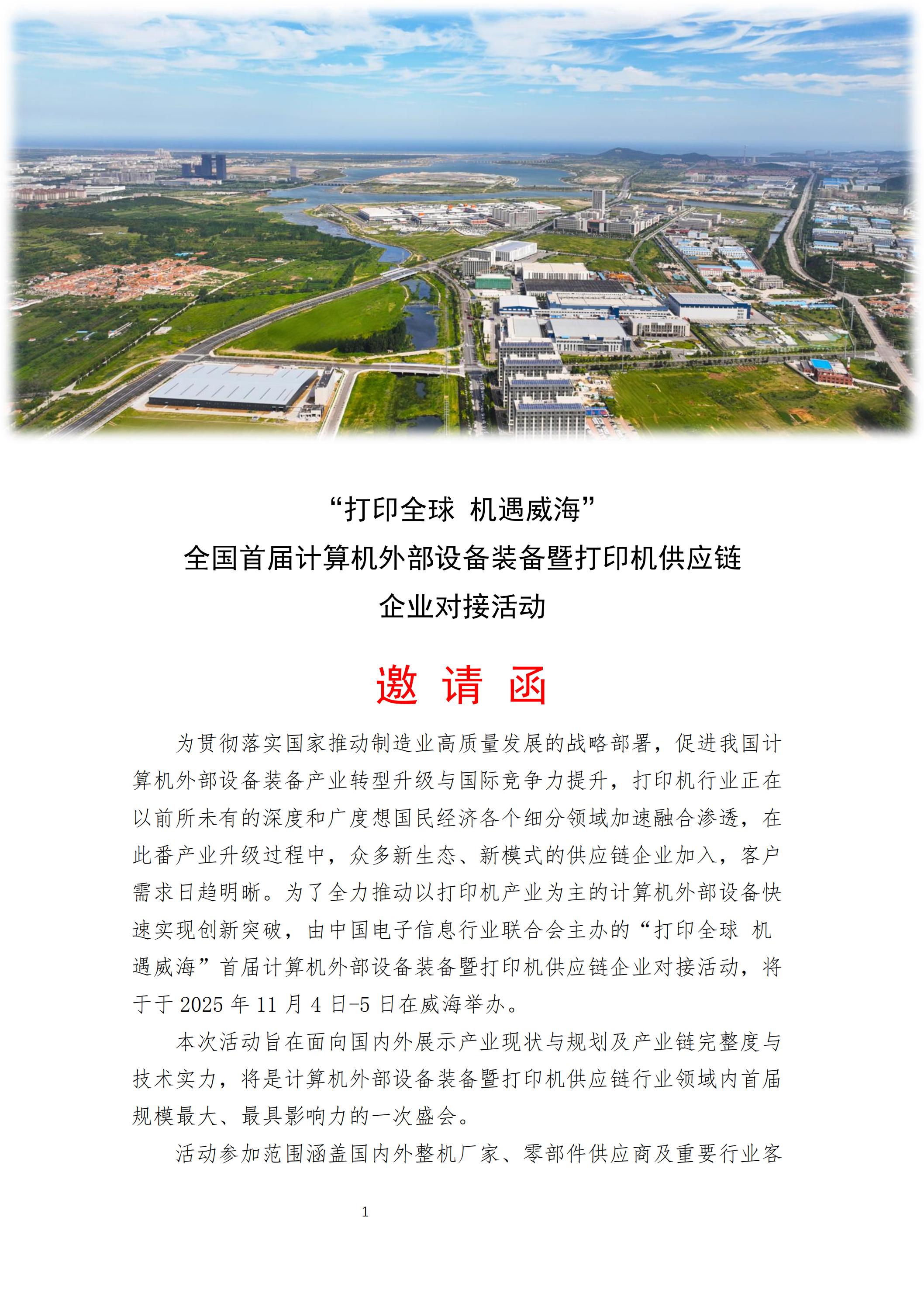 官方邀請函來了!全國首屆計(jì)算機(jī)外部設(shè)備裝備暨打印機(jī)供應(yīng)鏈?zhǔn)?1月在威海舉辦