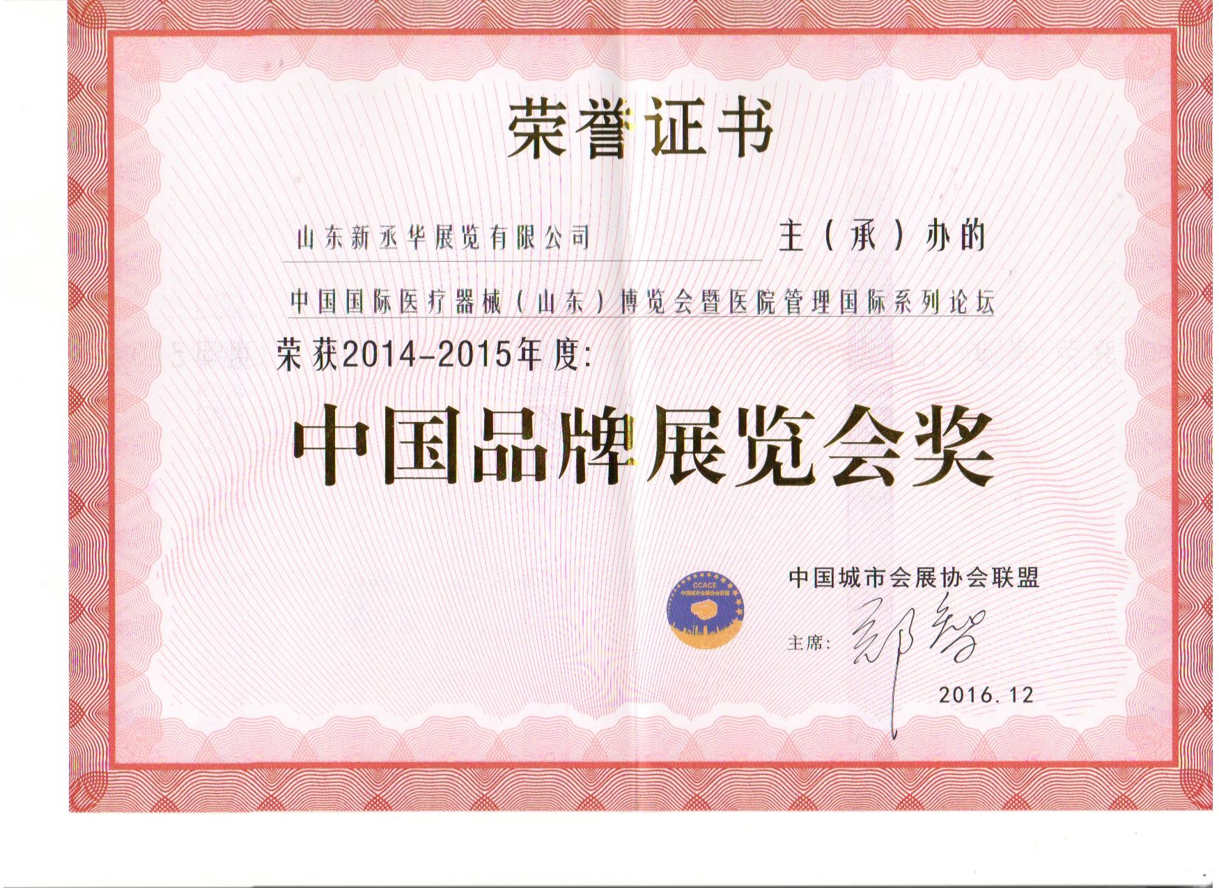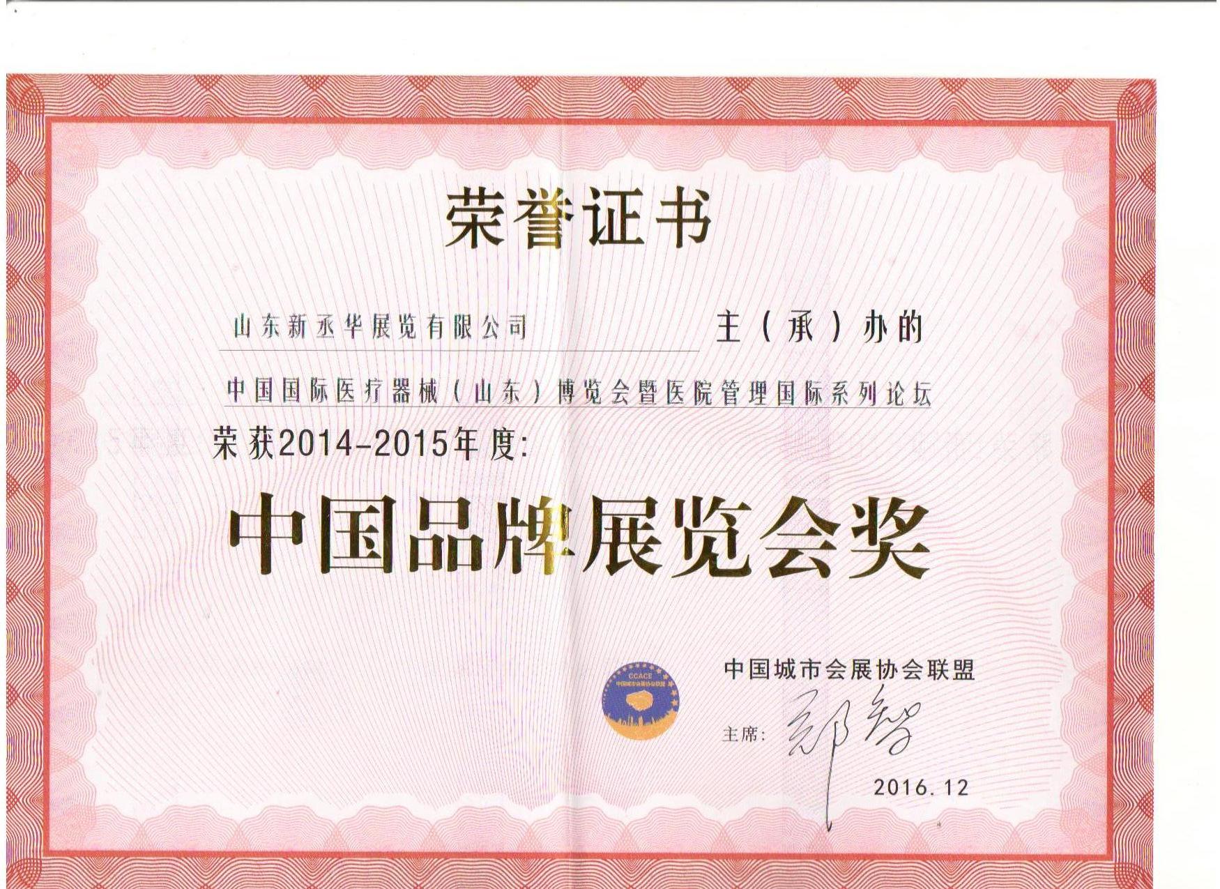 ,先后榮獲了“濟南市建功立業(yè)先進單位”、 “濟南市優(yōu)秀會展企業(yè)”“山東省會展行業(yè)優(yōu)秀會展組織者”、“2010年度中國十大優(yōu)秀會展公司”、“濟南市先進民營企業(yè)”“山東省服務名牌”等近三十項榮譽稱號。